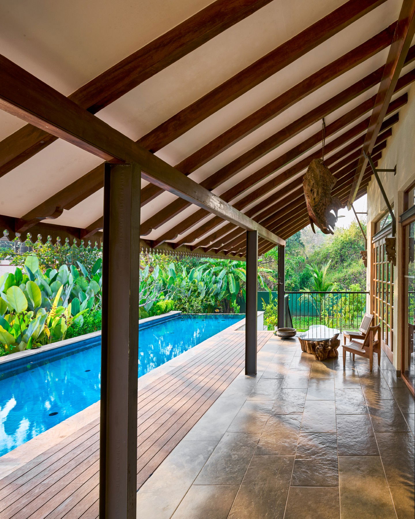 Rooted in its tropical setting, this villa is designed to merge seamlessly with its lush surroundings. A singular glass façade opens to the landscape, drawing in light and views, while the other elevations remain shaded and grounded which is a measured response to the climate. Deep verandas, tall ceilings, and open courtyards allow natural ventilation to flow through, creating spaces that are airy yet sheltered. Laterite-rendered walls and a palette of earthy finishes lend resilience and texture, softening the clarity of the contemporary form. More than a residence, it is a tropical retreat which is modern yet timeless, open yet private, designed to sustain in harmony with its environment.